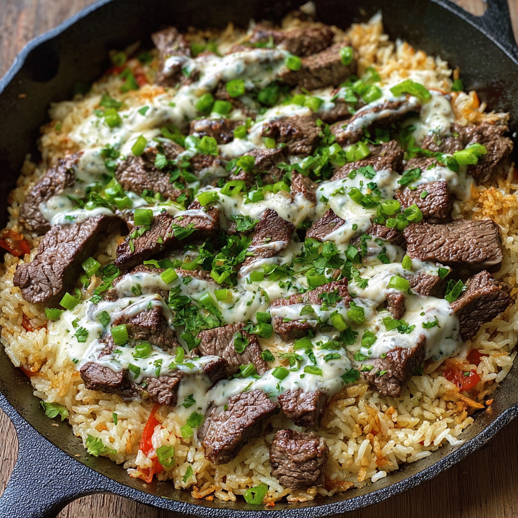 Steak Cheese & Rice Skillet